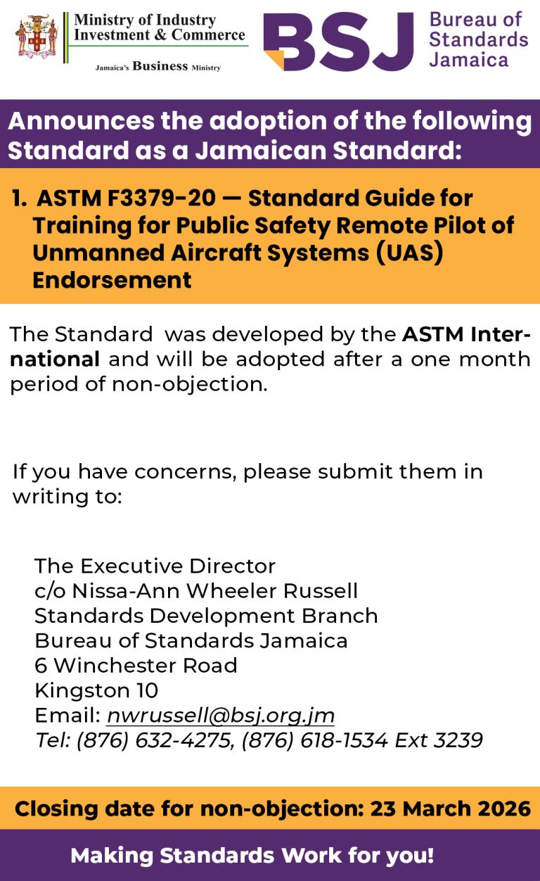 BSJ announces the adoption of the following Standard as a Jamaican Standard: ASTM F3379-20