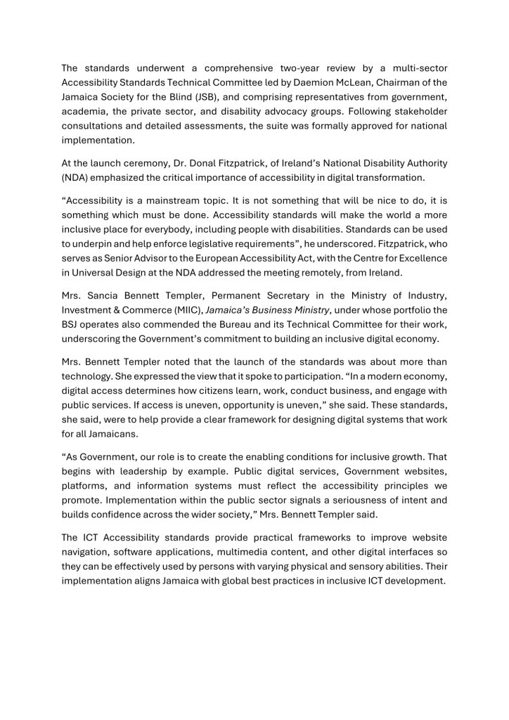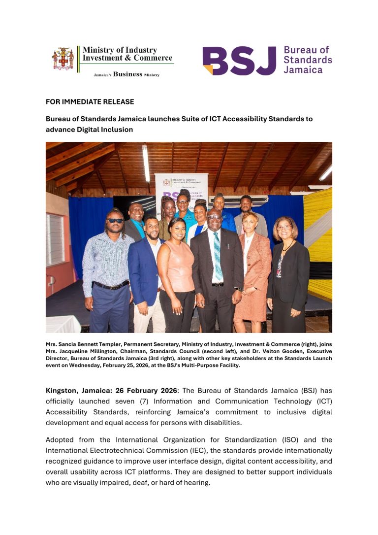 Bureau of Standards Jamaica launches Suite of ICT Accessibility Standards to advance Digital Inclusion