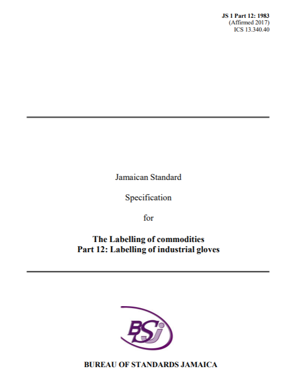 JS 1: Part 12: 1983 (2017) – The labelling of commodities. Part 12: The labelling of industrial gloves