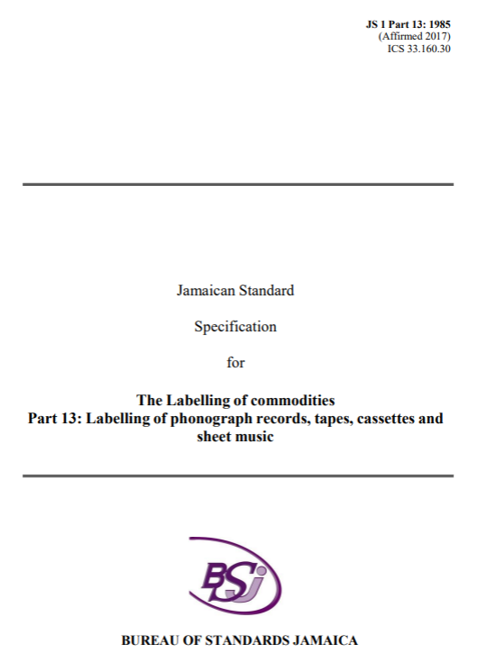 JS 1: Part 13: 1985 (2017) – The labelling of commodities. Part 13: The labelling of phonograph records, tapes, cassettes and sheet music