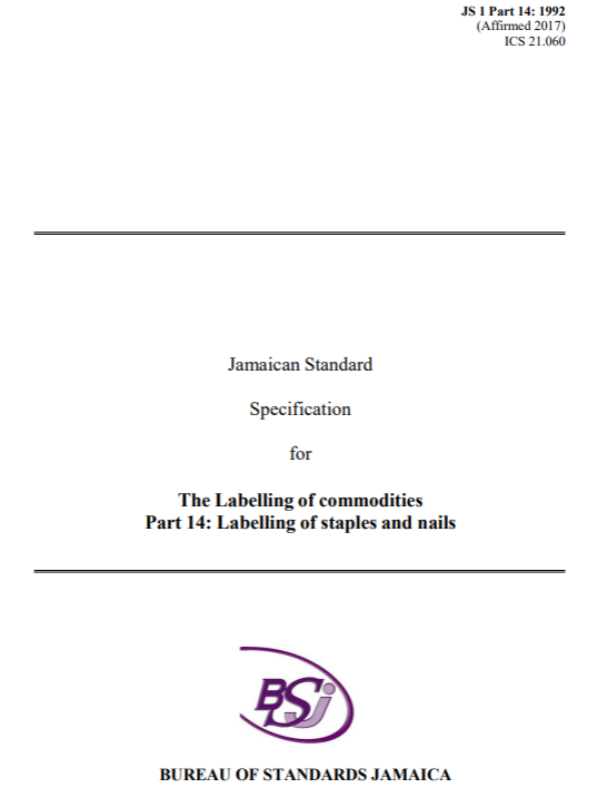 JS 1: Part 14: 1992 (2017) – The labelling of commodities. Part 14: The labelling of staples and nails (previously Labelling of fasteners)
