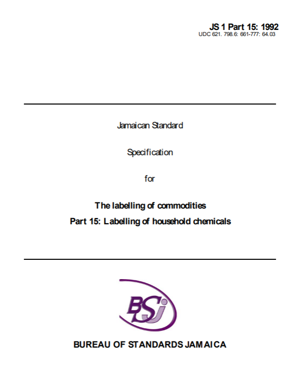 JS 1: Part 15: 1992 – The labelling of commodities. Part 15: The labelling of household chemicals