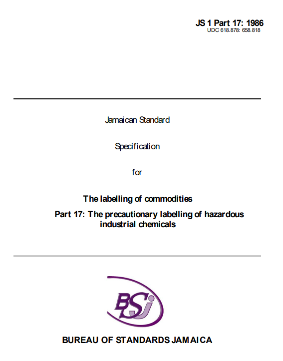 JS 1: Part 17: 1986 – The labelling of commodities. Part 17: The precautionary labelling of hazardous industrial chemicals
