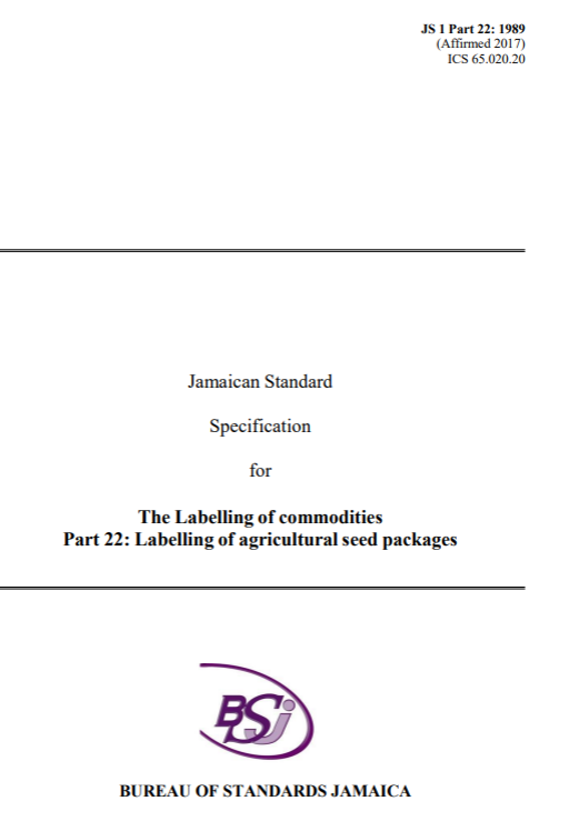JS 1: Part 22: 1989 (2017) – The labelling of commodities. Part 22: The labelling of agricultural seed packages