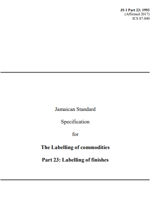 JS 1: Part 23: 1993 (2017) – The labelling of commodities. Part 23: The labelling of finishes