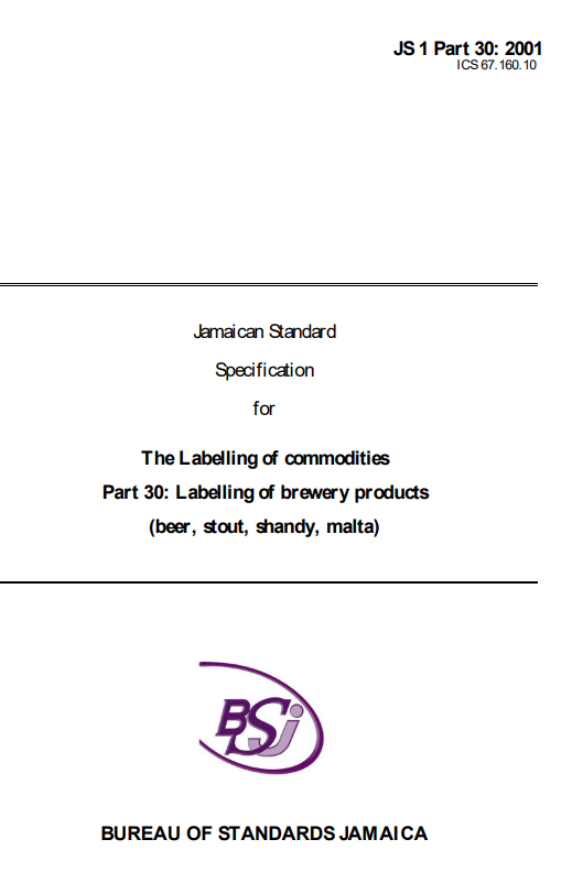 JS 1: Part 30: 2001 – The labelling of commodities part 30: The labelling of brewery products (beer, stout, shandy, malta)