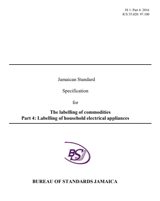 JS 1: Part 4: 2016 – The labelling of commodities. Part 4: The labelling of household electrical appliances