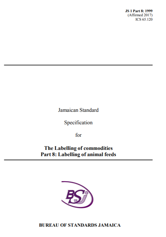 JS 1: Part 8: 1999 (2017) – The labelling of commodities. Part 8: Labelling of animal feeds