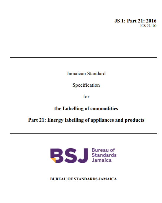 JS 1: Part 21: 2016 – The labelling of commodities. Part 21: Energy labelling of appliances and products