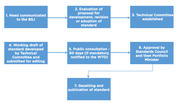 The Bureau of Standards Jamaica is responsible for facilitating the timely development, promulgation, promotion and implementation of standards for goods, services, processes and practices.